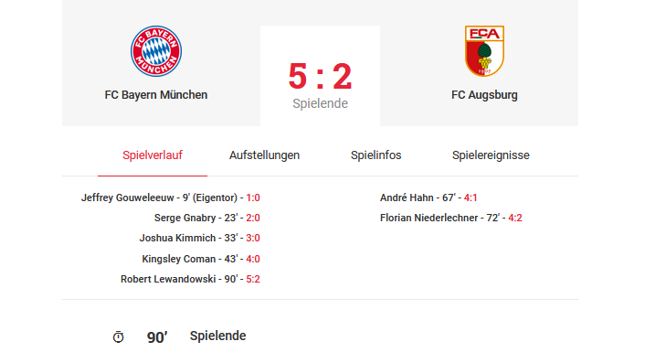 Die Palette der Livetickereinträge erweitert sich entsprechend um:
